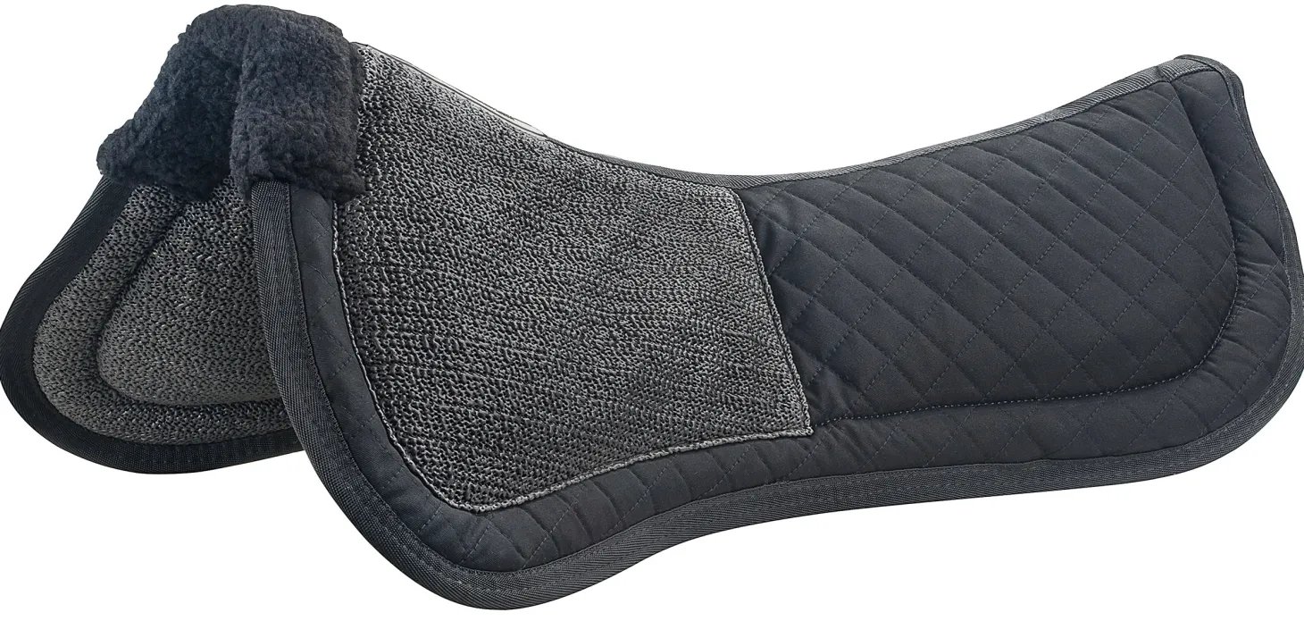 Success Equestrian’s high-quality, no-slip grip material lines the bottom of this half pad to keep from slipping on any saddle pad. The inner layer is open cell, breathable and shock-absorbing foam. A strategically placed no-slip grip on the top helps keep your saddle from slipping—it is hardly noticeable when tacked up.