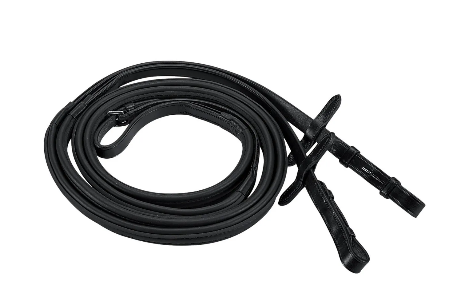 Covered in smooth ThinLine material, ThinLine® Dressage Reins conform to your grip while you’re riding and then return to their original state afterward. They have a traditional look suitable for competition and the durability to stand up to everyday use. These reins are have sewn-on stops and are available with either buckle ends or hook stud ends.