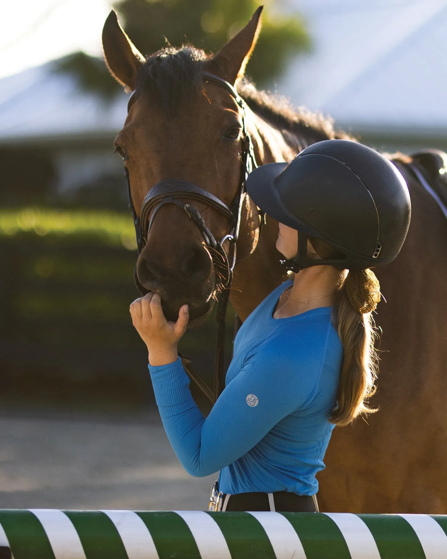 Full coverage, four-way stretch and moisture wicking make the TKEQ Kennedy Seamless Long Sleeve Top an equestrian essential. In a comfortable, flattering, seamless body design, this ultimate training shirt also provides breathability and helps block UV rays.