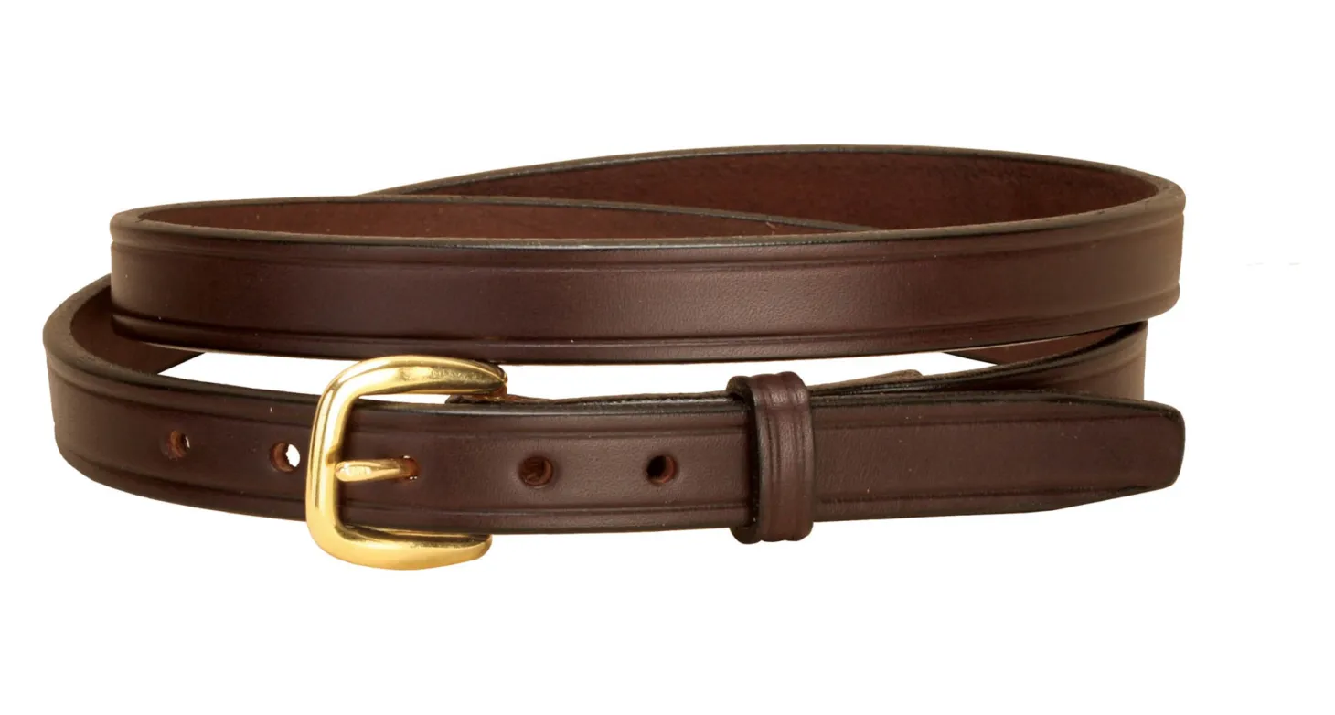 The timeless styling of this Tory Leather ¾” Plain Belt with Brass Buckle makes it perfect for any look. Made with pride in the USA, this high-quality, supple bridle leather belt is nicely finished with creased edges, a creased keeper and a snap buckle closure. Width is perfect for fitting belt loops on most jeans and breeches.