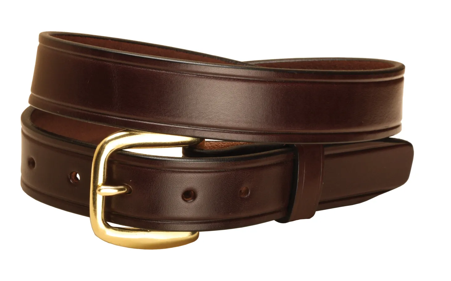 This Tory Leather 1 1/4″ Plain Leather Belt is nicely finished with creased edges and a snap buckle closure. High-quality bridle leather gives it a timeless look, durability and a luxurious feel.