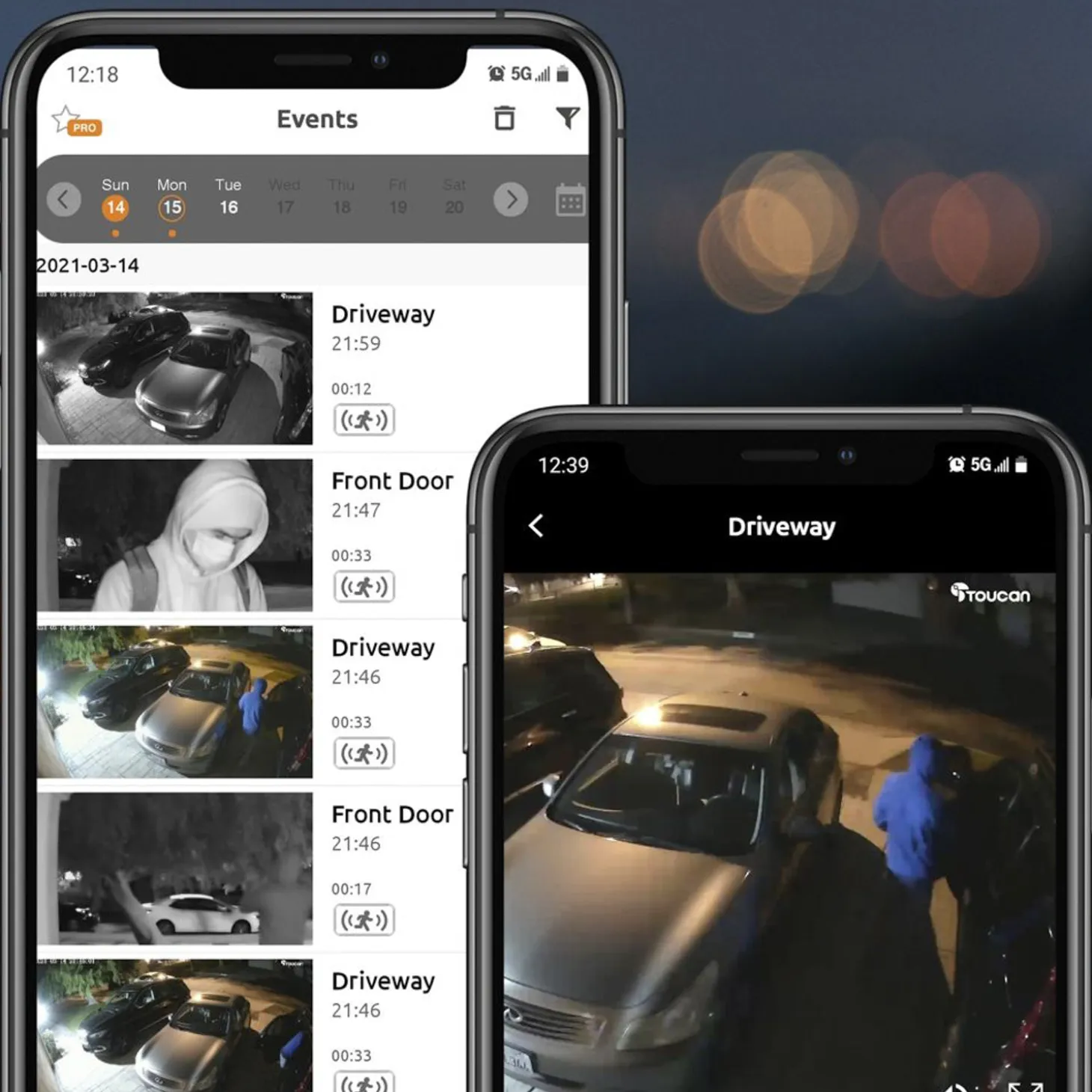 With the Toucan Smart Home app, you can use two-way communication to speak through the camera, use prerecorded auto-responses to let someone know that you’re watching, even trigger the 110dB siren and flashing light from the app. Customizable motion zones let your security light camera alert you only when it detects motion in your desired locations.