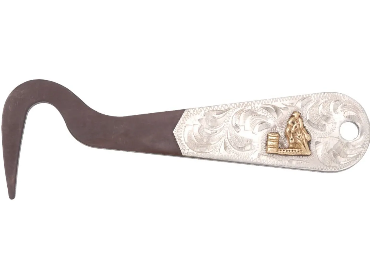 Tough-1® Antique Brown Hoof Pick features a gorgeous antique brown finish and features an engraved silver overlay design. It’s the perfect item for a gift or an award!