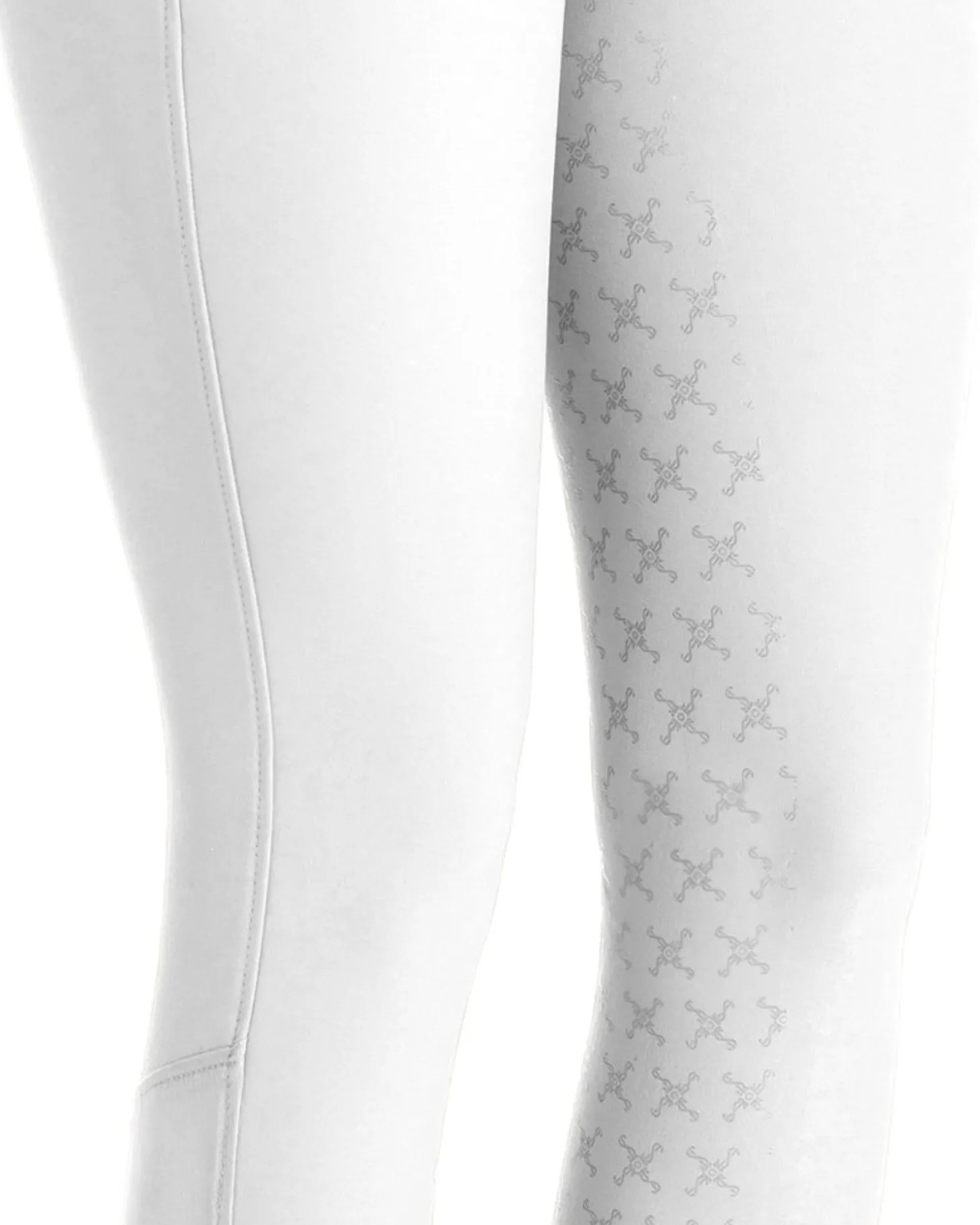 Silicone printed on the fabric creates a grippy full seat; integrated stretch panels fit smoothly inside boots.