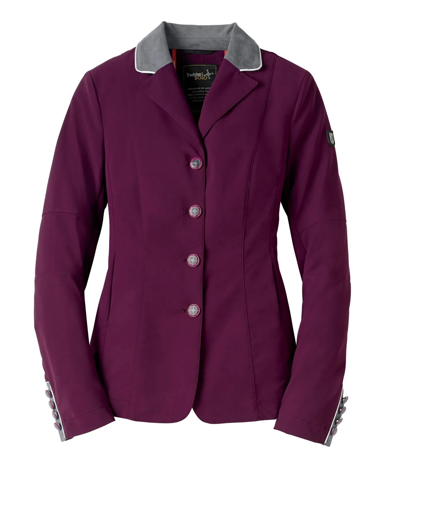The Tredstep™ Solo Vision Coat is tailored in exclusive high performance I-Cool fabric. It’s lightweight, with silent motion and 360 degree stretch. This easy-care show jacket is at the top of its class, incorporating mesh under the articulated sleeves, a hidden front zipper under contrast snap buttons and matching contrast collars and cuff details. These elements combine grace and beauty with athletic functionally for the ultimate comfort. Left unlined to maintain the light feel. Extended sizes available.
