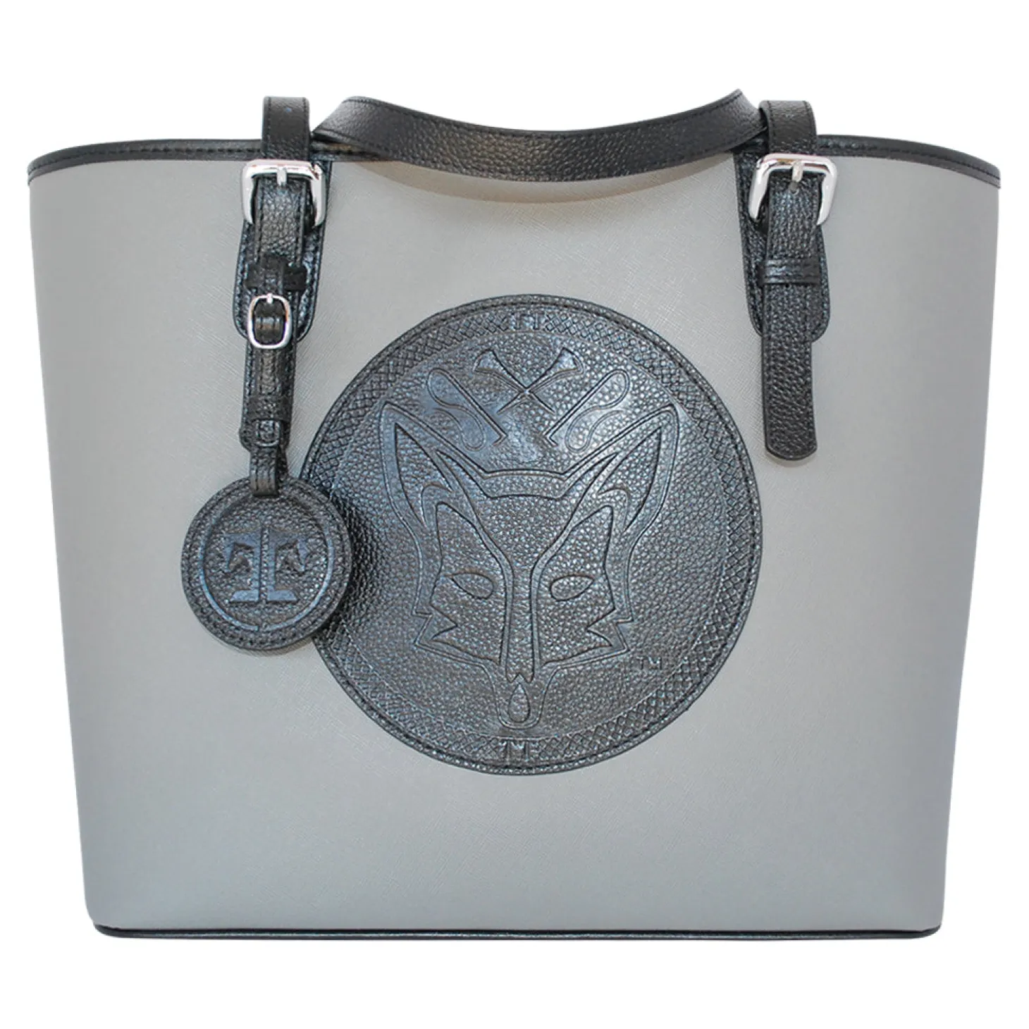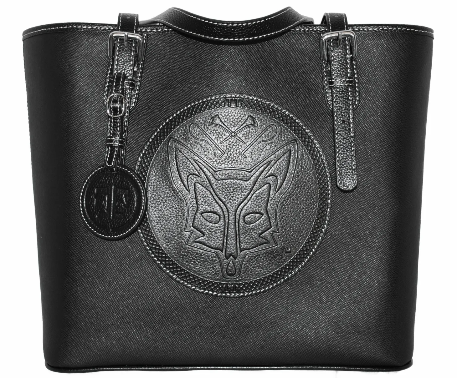 The James River Carry All is the most versatile and durable creation yet from Tucker Tweed Equestrian™. This generous tote with scratch-resistant saffiano leather exterior stands firm on carrying daily essentials to the barn, shows or for days at the office. The roomy woven scarlet-lined interior has pockets for smartphone and key fob, a large zippered pocket for extra security and a tablet compartment with snap closure and embossed leather logo. Complete with silvertone hardware and feet, this handbag is embossed with a hunter/jumper motif in pebble-grain leather of a contrasting color. Features include a silvertone lobster-clasp closure, oil rubbed edges, silver buckle accents and double handles with adjustable 7-11″ drop. Includes cream satin logo dust cover.
