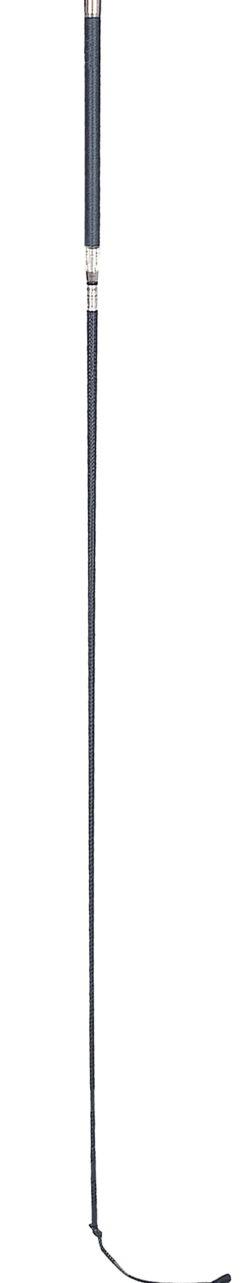 A classic style suitable for training and competition, this Wonder Whip® Dressage Whip is made with the finest materials and workmanship. The leather handle, with just one stitched seam, adds grip while the elegant chrome mushroom cap adds to your secure hold. It features a fairly flexible (medium flex) fiberglass shaft covered in woven polyethylene.